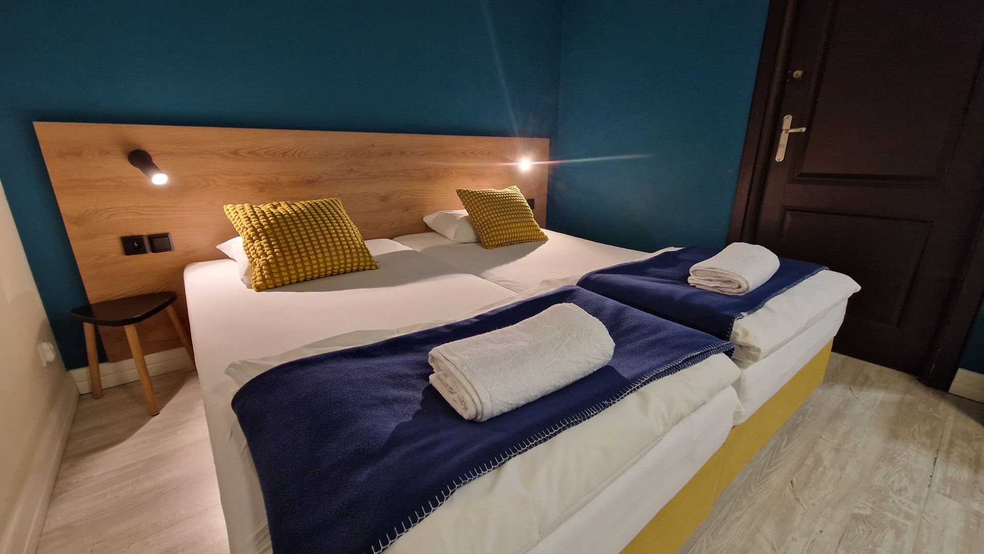 Przestronny pokój o powierzchni 30 m², idealny dla trzech osób lub rodziny. Posiada dwa połączone łóżka 100 × 200 cm (można je rozdzielić) oraz dodatkowe łóżko 90 × 200 cm, zapewniające komfortowy wypoczynek dla wszystkich gości.